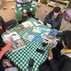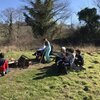 Saat 11:25’de açık sınıf çalışmaları başlıyor. 5. sınıf öğrencileri Berna Öğretmen’le birlikte büyük kubbe yapıya giriyorlar ve “Ağaç Diken Adam” (https://www.kitapyurdu.com/kitap/agac-diken-adam/352133.html) adlı kitabı okuyorlar. 6. ve 7. sınıf öğrencileri ise sanat öğretmenleri Pınar’ın eşliğinde açık havada güneşin altında toplanıyorlar. Bugün büyük sınıflar için Güncel Sanat ve Ekoloji (https://www.akbanksanat.com/kitap/guncel-sanat-ve-ekoloji-andrew-brown-turkceye-cevirenler-emre-gozgu-yigit-adam/3751) ve benzeri sanat ve doğa ile ilişkili kitaplar getirmiştim. Bu kitapları yanımda getirirken aklımda sanat ve doğayı birbirleriyle ilişkilendirdikleri takdirde orman yürüyüşlerimize daha bir anlam katmaları ihtimaliydi. Ancak gençlerin yoğunlaştığı konu daha ziyade ‘neden güncel sanatı anlamak bu kadar zor?’ sorusu olmuş. Her halükarda açık havada sanatla ilgili konuşmak harika bir şey! Bundan sonrası bakalım nasıl devam eder.