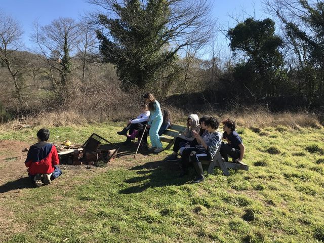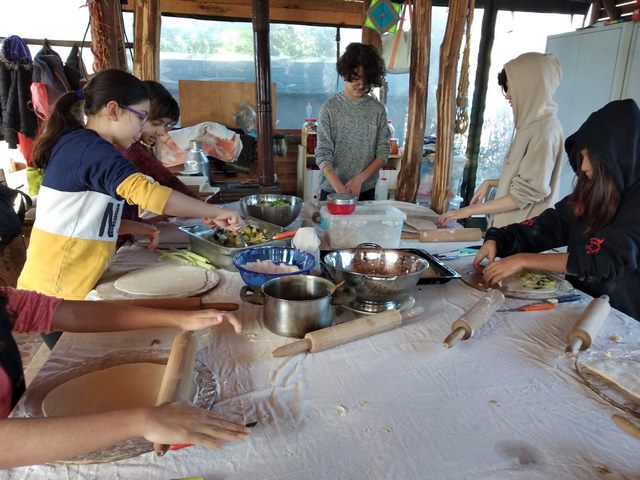 Birlikte öğrenecek pek çok şey var. Şubat ve Mart ayları boyunca ateş elementi üzerine yoğunlaşacağız. Bu yüzden bugün kerpiç fırını ateşinde kendilerine pide pişirecekler ve büyük bir kamp ateşi yakacaklar. Hava güneşli ve keyifli, öğrenciler de öyle. Permakamp’a girişlerinden belli, bugün enerjileri yüksek. Bu güzel enerji bizleri de güçlendiriyor ve günün içine birlikte akmaya başlıyoruz. Önce yaklaşık 30 dakikalık bir serbest zamanları oluyor. 5. sınıf öğrencilerinin akıllarında Permakamp’a geldiklerinde gerçekleştirmek istedikleri projeleri var; dolayısıyla vakit kaybetmeden işe girişiyorlar. Kazılacak bir tünel, gizli yerlerde inşa edilecek alanlar ve daha neler neler... 6. ve 7. sınıf öğrencileri ise ağların üzerinde sohbet etmeyi tercih ediyorlar. Kahkahalar, çığlıklar, biraz da koşturma sesleri yayılıyor ağlardan etrafa.
