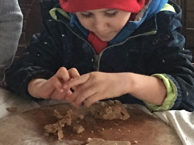 Biz ormanda çamurla yüzleşirken, Permakamp’ta kalanlar açık sınıf çalışmasının ardından ekiplere ayrılıyorlar. Mutfakta Nesrin’le kurabiye pişirecek ekip ve Seteney’le bulut avına düşecek ekip. Seteney ile birlikte olan ekip önce, içinde arap sabunu ve bol su dolu bir kaseye pipetlerini sokup hava püskürterek baloncuklar yapıyorlar kahkahalarla. Sonra dışarı çıkıp, ellerinde bir bulut rehberi, biraz okuyup biraz bakınarak bulut gözlemliyorlar. Bizim ormandan dönüşümüzle birlikte yemek zamanı geliyor. YeniOkul öğrencileri mutfakta yerken, Meşepalamudu öğrencileri Dom’da yiyorlar yemeklerini. Önce sıcacık çorbalar içiliyor, ardından sandviçler çıkıyor. Yemek ve bulaşığın peşi sıra bu defa YeniOkul öğrencileri ormana doğru yola çıkıyorlar. Biz kalıyoruz Permakamp’ta. Bu defa önce atölyeler sonra açık sınıf çalışması, çünkü kurabiyelerin pişmesi için zamana ihtiyaç var.
