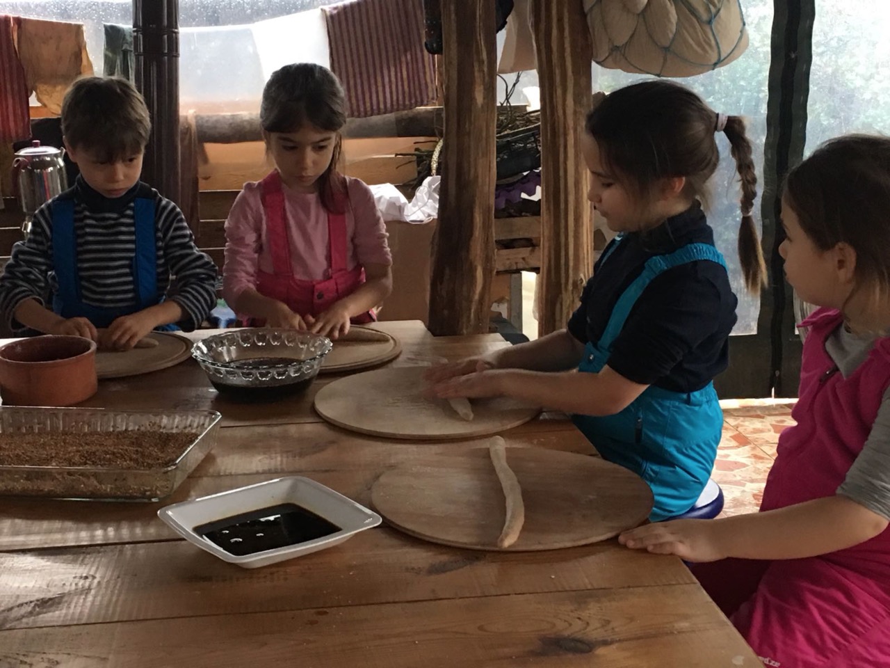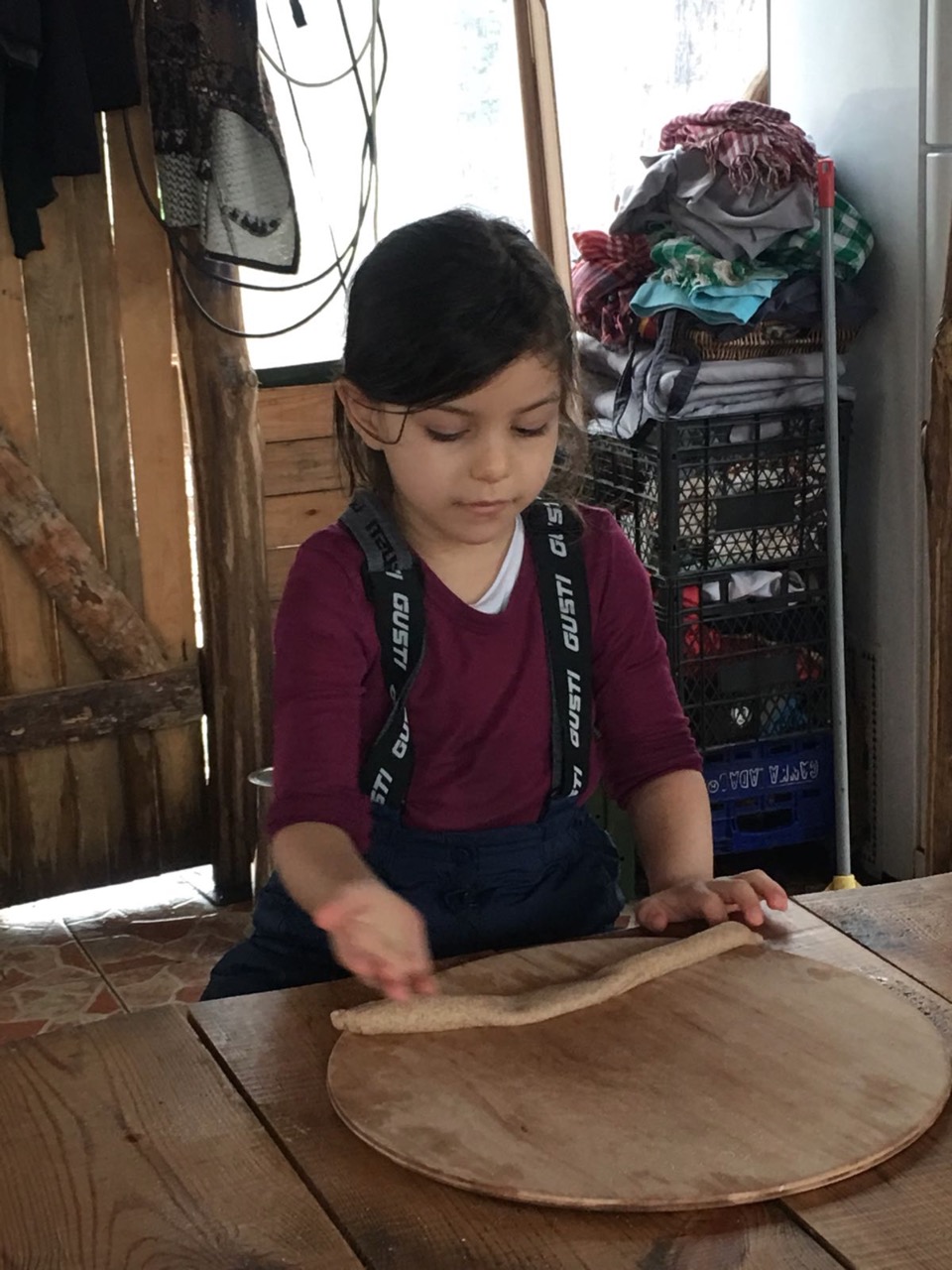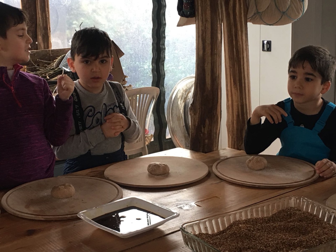 Evet bugün de iki gruba ayrıldık yine. Bir Permakamp’ta kalan ekip, bir de ormana yürüyen ekip. Kampta kalanlar biraz marangozluk işleri yapmışlar, Dom’a birkaç küçük oturak eki ve elbette şahane ekşi maya simit yapımı atölyesi. Dom’daki açık sınıf çalışmalarına yağmurun şıpırtıları ve sobanın çıtırtıları karışmış. Yemek vakti buluştuk Dom’da. Dom’da kalmış olan ekip bize gülerek bakıyor, “bu ne ıslaklık yahu!” Sobanın yanında kuruyup ısınıyoruz, üzerimizden dumanlar tütüyor. Montlarımızdaki yağmur damlaları sobanın sıcağında buharlaşıyor, hepimiz buna şahidiz =). Sıcacık çorbalar, leziz sandviçler. Bugünün tek kusuru serbest oyun zamanının az olması ve Dom’da biraz fazla zaman geçirmek. Ama orman yürüyüşü her şeye değer =). Yemeğin ardından diğer ekip hazırlandı orman yoluna. Hiç kimse demiyor ki, “Hava yağmurlu ben gitmem yahu!” Güle oynaya düşüyorlar orman yoluna. Orman bizi bekler mutlaka... Geride kalan ekip yine mutfakta ekşi maya simit yapıyor, sonra da dönüp kısa bir açık sınıf çalışması. Yağmur arttı mı ne? Dom’un tepesine pıtır pıtır çarpıyor yağmur... İlkbahar döneminde neler olur, onu okuyorlar ‘Doğa Güncesi’ kitabından. Ardından ilk tohumlarımızı fideleme işine girişiyoruz bir heves. Önce fideler için yumuşak bir torf hazırlamak gerek. Perlit (volkanik taş), Hindistan cevizi kabuğu ve ince bir toprak, bir kovada karıştırılıyorlar, iyice ve avuç avuç. Perlit, toprağı havalandırmak için; hindistan cevizi kabuğu, nemi tutsun diye. Bunları konuşuyoruz ama Dom’un içinde uyanmaya başlayan minik böcekler ve örümcekler zaman zaman rol çalıyorlar elbette. Bakmamak olmaz :). Torfu hazırlayınca yumurta kabuklarının içine dolduruyoruz. Yumurta kabukları bizim mini fideliklerimiz. Fidelerimiz büyüyünce bunlarla birlikte ekeceğiz toprağa. Tatlı sivri biber tohumları tek tek konuyor yumurta kabuklarına. Aman tek bir tohum yere düşüp kaybolmasın!