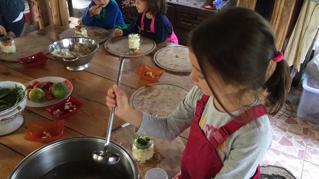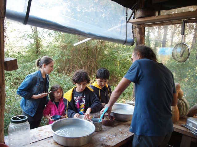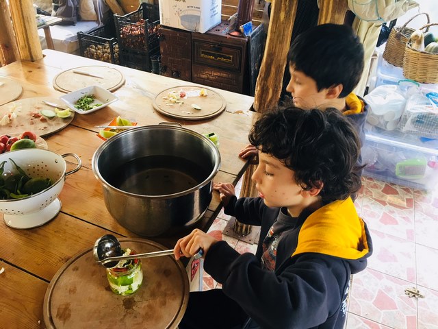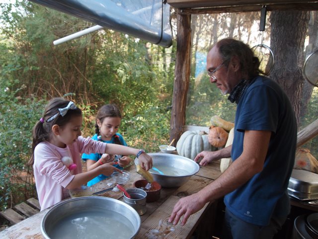 Henüz bir su birikintisinden hallice, ama formu yavaş yavaş ortaya çıkmaya başladı; gölet üzerinde çalışmaya devam... Küçük grup haklı olarak çabuk yoruluyor. Hem yoğun dikkat harcıyorlar, hem de ağır bir alet kullanıyorlar. Saat 12’ye doğru öğle yemeğine geçiyoruz. Orman ekibi de araziye dönüyor. Çorba ve sandviç eşliğinde öğle yemeğine dalıyoruz. 12-13 arası öğle yemeği, kendi kaselerimizi ve kaşıklarımızı yıkama ve serbest oyun zamanı. Bu zaman bizim için en az açık sınıf çalışması, orman yürüyüşü veya mutfak çalışması kadar önemli. Çünkü çocuklar bu zaman aralığında özgürler ve kendi yapabilirliklerini ölçtükleri bir oyun alanında yönergeler olmaksızın oyun oynuyorlar.