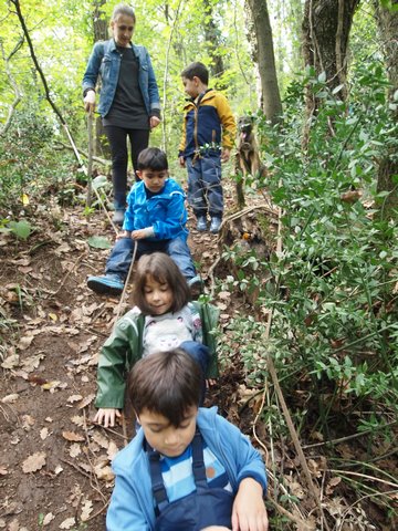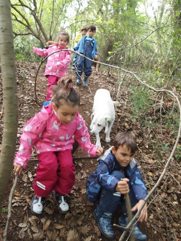 Sınırları çizilmemiş bir oyun alanı; nerede başlıyor, nerede bitiyor belirsiz. Tıpkı her çocuğun sahip olduğu kendine özgü kabiliyetleri gibi. Saat 13 suları bu defa ben Tırtıl Anaokulu ile orman yürüyüşüne çıkıyorum. YÖM İlkokulu ise Permakamp arazisinde kalıyor. Onların da sakin bir 15 dakikaları var serbest oyun için. Ardından açık sınıf çalışmasına giriyorlar. Kendi gruplarına ait bir çalışmaları var. Doğal malzemeler üzerine konuştukları ve tartıştıkları bir proje bu. Bu çalışmayı tamamladıklarında Nesrin’le turşu kurma ekibi ve bahçede gölet kazıp brokoli fidesi ekme ekibi olarak gruplara ayrılıyorlar. Biz ise ormanın derinliklerine doğru uzun bir yolculuk yapıyoruz. Sakin, mümkün olduğunca yavaş. Yanımızda bizimle birlikte yürüyen köpekler var.